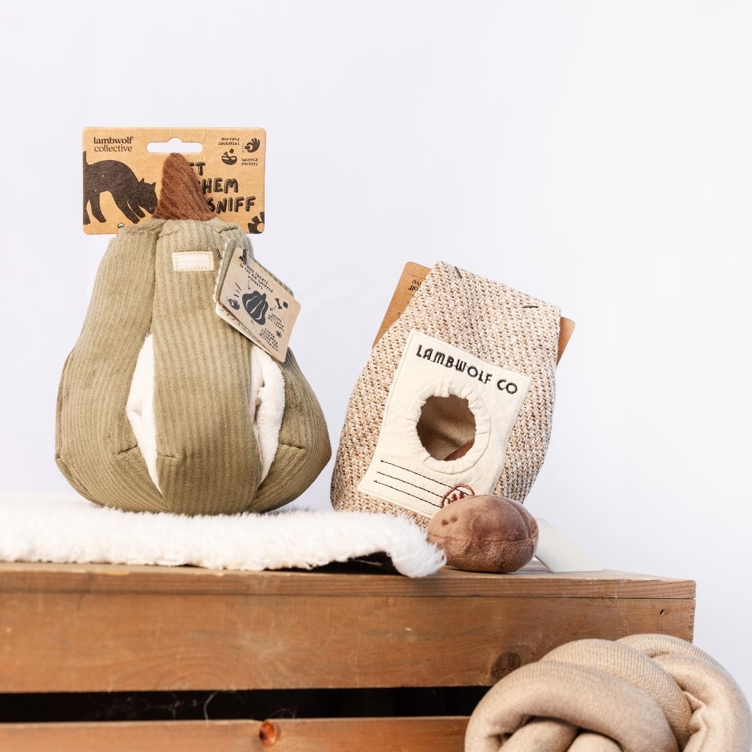 These innovative toys from Lambwolf Collective bring a little magic to enrichment play. Designed to stimulate your dog’s natural foraging instincts, each one features clever folds, pockets or hidden spaces to tuck in treats and encourage sniffing, snuffling, and problem-solving.